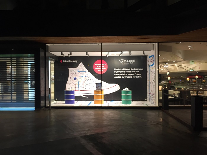 Charitativní značka Maappi, za kterou stojí příběh 14letého Matěje, jenž trpí autismem a zároveň rád maluje mapy, otevřela v červnu svůj pop-up store v prostorách obchodního domu Kotva. Nabízí v něm veškerý svůj sortiment z e-shopu, tedy například trička, mikiny a batohy, ale také limitovanou edici značky Converse s mapou Prahy v roce 2100.