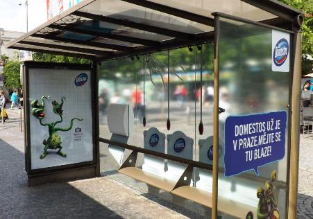 Společnost Unilever připravily v rámci své podzimní kampaně kreativní podporu v outdoorových médiích. Zastávky MHD v Praze na Florenci a na Andělu se proměnily s produkty Cif a Domestos. U zastávky Domestos rozdávaly hostesky kolemjdoucím vzorek výrobku Domestos Attax. Akce se pro úspěch opakovala i na začátku tohoto tyýdne. Mediální nákup zajistily agentury PHD a Media Service, kreativitu připravila UP brand activation.