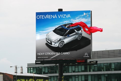 Automobilka Citroën v rámci své kampaně na nový model Citroën DS3 Cabrio komunikuje outdoorovou kampaní, v níž využívá double bigboard s vlajícím šátkem, umístěný na D1 směrem do centra před Chodovem. Šátek je přitom uváděn do pohybu přimontovaným fukarem.