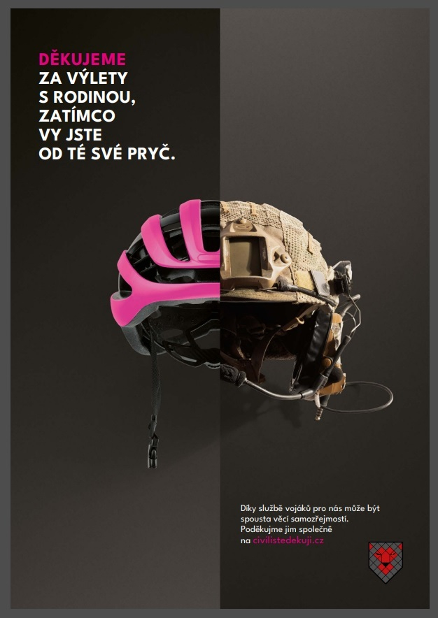Pro projekt vznikly také speciální vizuály z dílny neziskové organizace LonelyBase, které v sobě kombinují válečnou tematiku s věcmi z běžného života - neprůstřelnou helmu s dětskou helmou na kolo či noktovizor s látkovou oční maskou na spaní. Své díky přidala třeba i Dana Drábová, herečka Kristýna Frejová, Ondřej Vetchý či Václav Marhoul, ale i další civilisté nejrůznějších věků i profesí. Kampaň běží také v digitálním prostředí a stojí za ní již zmíněná nezisková organizace LonelyBase, s komunikací pomáhá MSL Czech Republic.