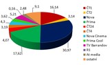 Graf: Share TV stanic v únoru 2011, celodenní hodnoty v %, D15+. Zdroj: ATO-Mediaresearch