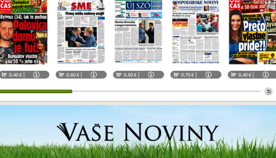 Slovenský online kiosek Vaše noviny.sk, který na začátku června spustila společnost A SMS, pohybující se na trhu mobilního marketingu, se rozšiřuje o další slovenské deníky. Vaše noviny.sk nabízejí na uvedené internetové adrese k zakoupení slovenské deníky a časopisy a uživatelům pak umožňují jejich prohlížení v počítači nebo v tabletu. Tituly jsou většinou nabízeny za prodejní cenu, která je o něco výhodnější, než je prodejní cena titulů na stánku. Připraveny jsou v podobném formátu jako pdf, ale s tím rozdílem, že je nelze do počítačů stahovat, což má zabránit tomu, aby byly případně rozesílány dál.