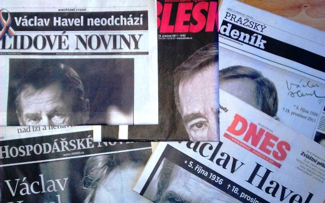 Pondělní vydání všech českých deníků – i bulvárních či sportovního Sportu – vzpomínají na prvního polistopadového prezidenta Československa a později České republiky mimořádnými vydáními a černou barvou na titulních stranách. Deníky Lidové noviny, Hospodářské noviny a regionální Deníky opustily svoji korporátní modrou barvu pro názvy svých titulů a pro pondělní vydání je nahradily černou nebo tmavě šedou barvou.