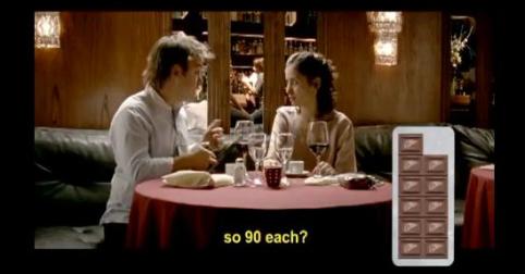 V TV spotech čokoládovny Cadbury se sloganem A man will never be as good as a whole Cadbury ženy měří hodnotu svých mužů pomocí jednotlivých dílků čokolády – bohužel vždy se stane něco, kdy skóre skončí na nule.