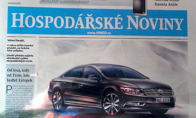 Čtvrteční vydání Hospodářských novin vyšlo s velmi nestandardním přebalem klienta Volkswagen.