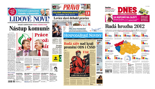 MF Dnes hovoří o hrozbě, Lidové noviny o nástupu komunistů a HN o „rudé záři nad kraji“. Právo mluví v titulku o oslavách levice spíš než o komunistech nebo rudých a regionální Deník o šoku pro pravici.