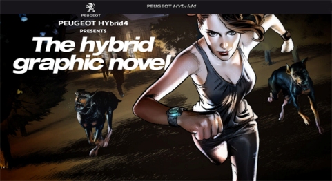 Francouzská automobilka Peugeot k propagaci svého modelu 3008 Hybrid 4 připravila interaktivní paralaxové stránky kresleným napínavým příběhem, jehož děj se odkrývá díky scrollování dolů. Děj je doplněn o hudbu a zvukové efekty brzdících aut, štěkajících psů či tříštění skla. Příběh nakreslil Gerald Parel, pod stránkami je podepsána agentura BETC Digital.