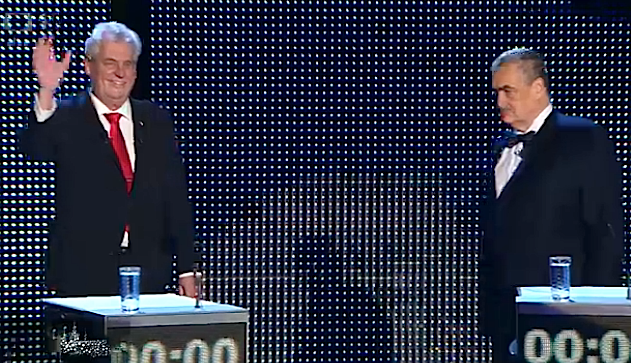 Na úvod svého krátkého veřejného vyjádření v České televizi po zvolení ironicky poznamenal, že se chystá odpovídat na otázky „inteligentních novinářů“, deník MF Dnes posměšně označil za deník bulvární a při polibku na rozloučenou s podporovatelkou Jiřinou Bohdalovou vyjádřil přání, aby z toho „bulvární MF Dnes neudělala sexuální aféru“. O moderátorovi ČT Václavu Moravcovi, s nímž ho v sobotu večer čekal hodinový rozhovor, řekl, že si hraje na dalšího z prezidentských kandidátů, ale že rozhovor s ním snad „nějak ustojí“. Diskusi na TV Prima, kde se má zúčastnit čtvrthodinové debaty, zase shodil tím, že neví, co lze za 15 minut smysluplného říci, ale pokusí se. Na dotaz jedné z novinářek, který špatně slyšel, začal odpověď slovy „Jestli jsem dobře rozuměl vašemu slabému hlásku...“.