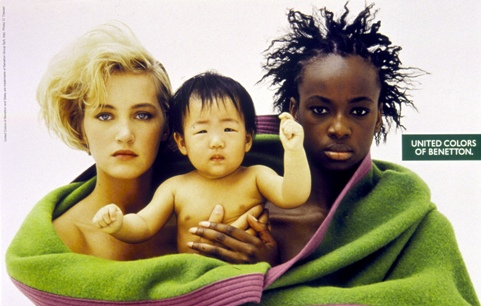 Komunikační styl Benettonu utvářel od roku 1982 fotograf a interní kreativní ředitel firmy Olivero Toscani, autor knihy Reklama jako navoněná zdechlina, který se nikdy nebál tít do živého a otevírat palčivá společenská tabu. Sázel na šokující témata a jednoduchá fotografická ztvárnění, jež jakoby na okraj doplnil jednoduchým zeleným logem.
