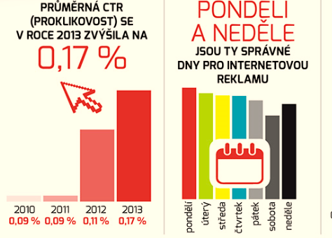 Průměrné CTR (click through rate, proklikovost) komerčních reklam se v letošním roce zvýšilo na 0,17 % (v roce 2010 0,09 %, v předchozích letech stoupalo pouze o setiny procenta). Ve své statistice to uvedla společnost Internet Billboard, která nabídla i infografiku tuzemského reklamního internetového trhu.
