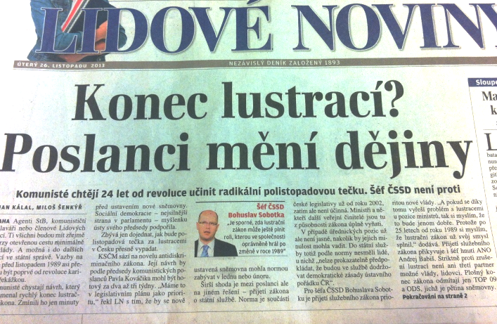 Pražské vydání LN, úterý 26. 11. 2013 (kliknutím zvětšíte)