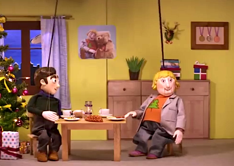 Mobilní operátor T-Mobile letos umístil svou kampaň na vánoční trh, kde nechal zahrát Vojtu Kotka a Lukáše Pavláska loutkové divadlo.