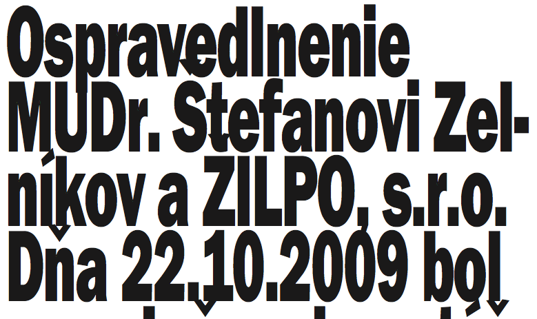 Týdeník se musí omluvit za to, že v roce 2009 vyjádřil pochybnost nad tím, zda bývalý poslanec vládní Slovenské národní strany Štefan Zelník nevyužil svých politických kontaktů, aby získal dotace z eurofondů pro své podnikání. Omluvu musí zveřejnit ve stejném písmu, v jakém byl titulek článku. „Je to výsměch naší justice,” komentoval šéfredaktor. Zároveň v omluvě musí zopakovat celý článek ve fontu titulku. Zatímco původní článek zabral 2,5 strany, omluva vychází na 54 stran.