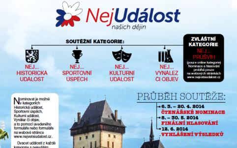 Celonárodní soutěž NejUdálost našich dějin představí události, které měly největší vliv na českou historii. Soutěž vzniká ve spolupráci Týdeníku Květy (Sanoma Media) a agentury CzechTourism. Má připomenout 180. výročí nejdéle vycházejícího tuzemského časopisu Týdeníku Květy. Zahájí ve čtvrtek 6. března.