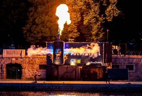 Umístění náplavky ale využila také Becherovka a její speciální interaktivní billboard Ice & Fire, který mohli uživatelé internetu ovládat během 4 květnových večerů. Nejlépe viditelný byl právě z náplavky, jeho umístnění blízko vody tak ve výsledku propojilo tři živly najednou – vodu, vzduch a oheň. Maketa ohromné lahve Becherovky Ice & Fire totiž v závislosti na aktivitě uživatelů Twitteru, Facebooku a webové stránky iceandfire.cz chrlila plameny.
