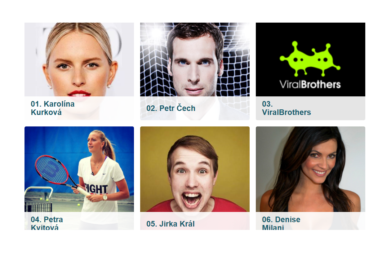 Magazín Forbes sestavil ve spolupráci se společností Socialbakers žebříček 77 nejvlivnějších Čechů na sociálních sítích. Ovládly ho celebrity, sportovci a youtubeři. Na prvních třech místech se umístili topmodelka Karolina Kurková, fotbalista Petr Čech a youtubeři Čeněk Stýblo a Erik Meldík vystupující pod názvem ViralBrothers.
