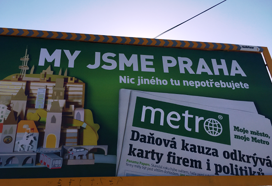 Pražské ulice rovněž zaplavily plakáty na podporu deníku Metro v hlavním městě. Do souboje se tak zapojila i mediální skupina Mafra, která na billboardech a v pražském metru hlásá, že "My jsme Praha" a že Pražané nic jiného než Metro nepotřebují. Metro je nejčtenějším deníkem v hlavním městě. Podle aktuálních dat výzkumu Media projekt za 2. pololetí 2015 představuje jeho odhadovaná čtenost 213 tis. čtenářů na vydání.