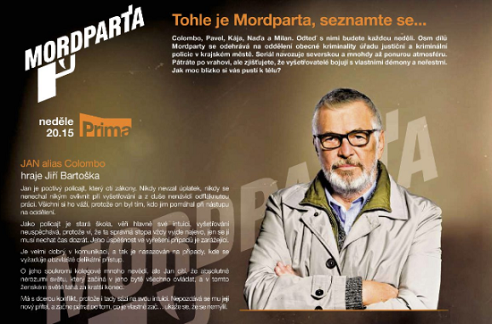 Svoji hlavní podzimní novinku, kriminální seriál Mordparta, představí televize Prima poprvé v neděli 29. srpna. Podporu pro televizní novinku zajišťují vedle klasických kanálů i netradiční reklamní formáty. Vůbec poprvé se nový seriál odpromoval v rámci celého vydání deníku Metro.