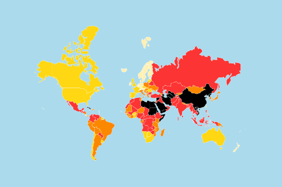 Mezi země na chvostu indexu svobody tisku ve světě patří Kuba, Súdán, Vietnam, Čína, Sýrie, Turkmenistán, Eritrea a poslední Severní Korea.
