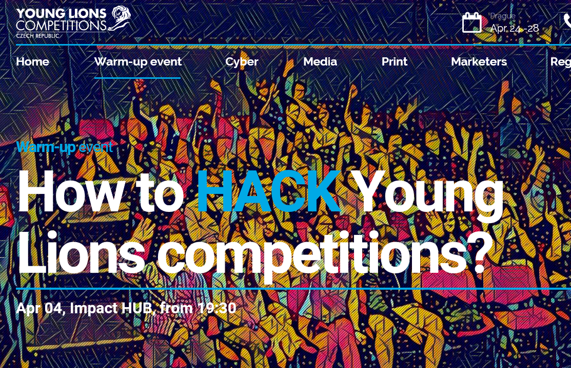 Soutěž pro mladé kreativce Young Lions, která se letos uskuteční ve dnech 24.-28. dubna, pořádá v úterý 4. dubna od 19:30 v Impact Hubu setkání pro zájemce soutěže. Má poskytnout potřebné informace o tom, jak nejlépe se na soutěž připravit a jak v ní uspět.