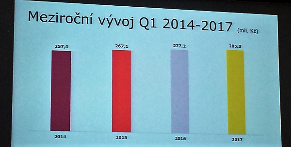 Objem čistých investic směřovaných do rozhlasové reklamy v prvním čtvrtletí 2017 dosáhl podle dat rozhlasových hráčů 285 mil. Kč. Bylo to o 2,9 % více než v prvním čtvrtletí 2016. Celkově investice do rádií se kontinuálně zvyšují , a to na regionálním i národním trhu téměř stejným tempem. Rostou segmenty telekomunikace, zábava, volný čas a elektronika. Naopak klesají segmenty hobby a vzdělávání.