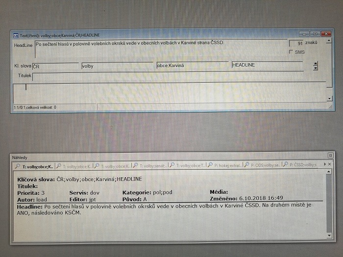 V okamžiku, kdy ČSÚ zveřejnil výsledky například z některého z krajských měst, program vytvořil podle předem připravené šablony zprávu, do které zveřejněné údaje rovnou umístil. „V ČTK platí pravidlo, že každá zpráva prochází přes editory. Toto pravidlo kontroly a případného doplnění platilo samozřejmě i pro tyto zprávy,“ dodala šéfredaktorka. Roboticky byla připravena zhruba polovina headlinů výsledkového volebního servisu, drtivá většina fleší (krátkých zpráv o dvou odstavcích s prognózou konečného výsledku) i zpráv po sečtení sta procent hlasů. Celkem tak prošlo rukama editorů přes 200 automaticky generovaných textů.