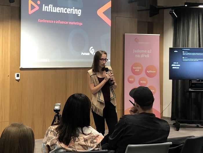 Andrea Pavelcová přednáší na konferenci Influencering, foto: MediaGuru.cz.