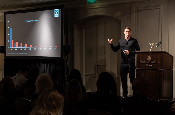 Rozdělení zákazníků podle počtu nákupů a možností komunikace, zdroj: prezentace Wiemere Snijderse na konferenci AKTV 2019