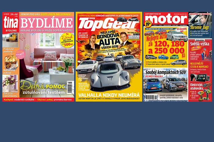 Měsíčník Top Gear vychází v Česku v licenci od BBC, Motor je čtrnáctideníkem, který přišel na trh před třemi roky. Tina Bydlíme je měsíčníkem, kterého se podle dat ABC ČR z letošního února prodalo více než 12 tis. výtisků. Prodeje časopisů Motor a Top Gear nejsou auditovány.