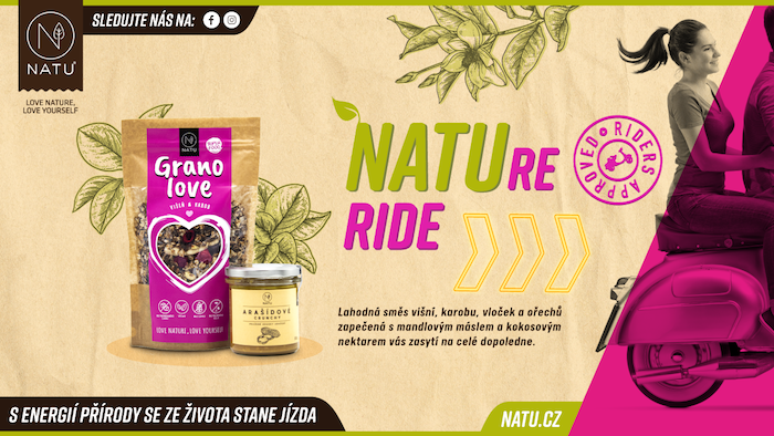 Český výrobce přírodních potravin Natu spouští v září komunikační kampaň s názvem „Natu.re Ride“, v níž tvrdí, že s energií přírody se ze života stane jízda.