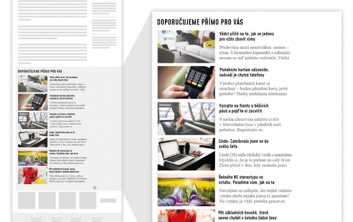 - V rámci spolupráce testuje Seznam.cz, jak box u partnerů zvyšuje počet zobrazení webu na jednu návštěvu i to, jaký způsob doporučování článků se pro web partnera nejvíc hodí.
