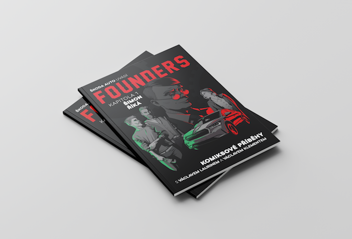 Kromě interaktivní hry se počítá rovněž se dvěma variantami tištěného komiksu, v němž se objevuje řada historických reálií, které mají u mladého publika potenciál vzbudit zájem o historii automobilky. Kampaňová varianta na standardním lesklém papíru bude mít 14 stran a obsahuje QR kód, který hráče nasměruje do hry. Primárně je určena k distribuci do prodejní sítě Škoda Auto. Prémiová varianta na ještě kvalitnějším papíru je obohacena o dalších 14 stran povídky s komiksovými doplňky. Slouží jako kompaktní kapitola Founders coby cena do soutěže, k zaslání influencerům a případně k pozdějšímu prodeji.