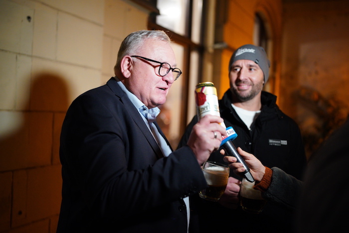 Se zlatou olympijskou plechovkou si připil s emeritním sládkem Václavem Berkou (vlevo) i olympijský vítěz z Nagana Martin Ručínský (vpravo), zdroj: Plzeňský Prazdroj.