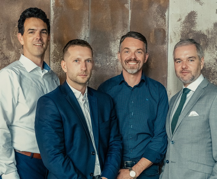 Zleva Jiří Přibyl, ředitel KB SmartSolutions; David Musil, spoluzakladatel společnosti Upvest; Patrik Nový, ředitel KB SmartSolutions; Petr Volný, spoluzakladatel společnosti Upvest, zdroj: Komerční banka