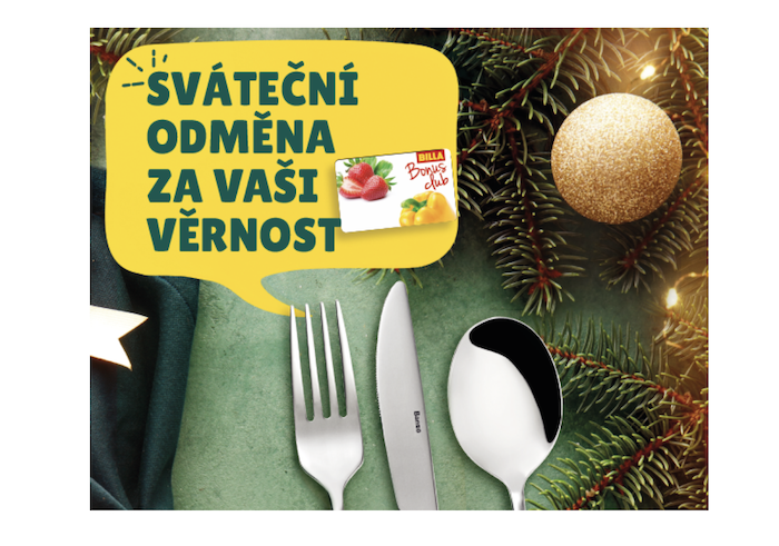 Při nákupu nad 1800 korun a při předložení věrnostní kartičky získají zákazníci sadu příborů švýcarské značky Banso Vogue. „Tato sada ocelových vidliček, nožů a lžic vydrží díky svému kvalitnímu zpracování opravdu dlouho. Svým stylovým designem se hodí do každé domácnosti, a tak může být hezkým dárkem pod stromeček třeba pro někoho blízkého,“ dodává Dana Bratánková z řetězce Billa. Příborový set bude k dostání v období od 29. listopadu až do 3. ledna 2024.