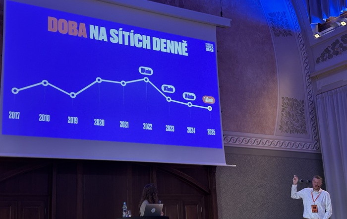 - Průměrný denní čas strávený na sociálních sítích představuje v letošním roce 143 minut (2:23 hod), což je o jednu minutu méně než v roce 2024 a o čtyři minuty méně než v roce 2023. Z pohledu času stráveného bylo zatím nejsilnější „covidové období" (2020 - 2022).