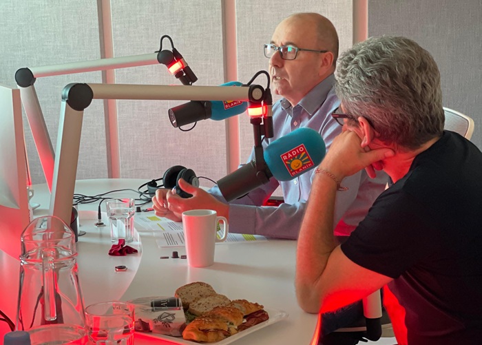 Marco Venturini, generální ředitel Peugeotu v ČR, a herec Radim Fiala, ambasador značky ve studiu Rádia Blaník. Zdroj: Radiohouse