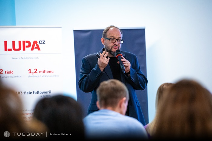 Josef Šlerka vystoupil na úterní konferenci Czech Internet Forum s přednáškou „Řekněte webu: Pápá". Zdroj: MediaGuru.cz:
