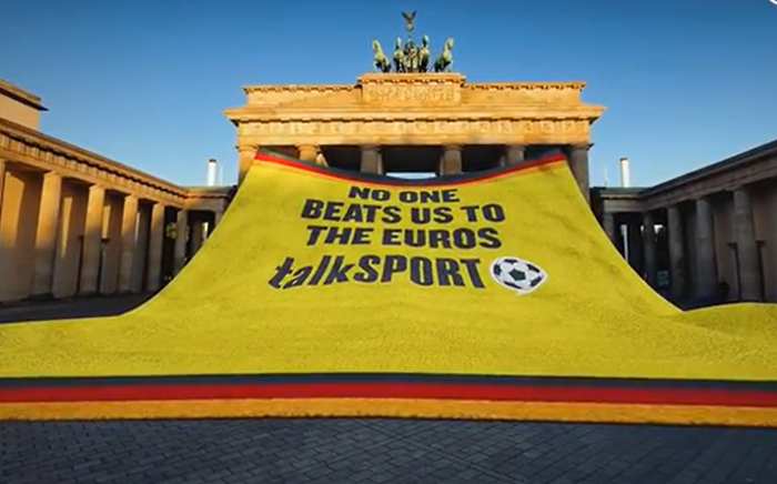 Nikdo nás na Euru nepřekoná, vzkazuje obří ručník vytvořený umělou inteligencí na Braniborské bráně v Berlíně. Narážka na německou mentalitu a zálibu v ležení na pláži při příležitosti startu evropského fotbalového šampionátu, který Německo hostí.