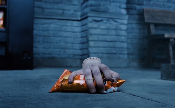 Kampaň snacků Cheetos odkazuje na seriál Wednesday od Netflixu. V krátkém filmu se objevuje i herec Victor Dorobantu, představitel „Thing“. Děj sleduje jeho zoufalý boj o otevření sáčku Cheetos. Kreativní koncept od agentury Isla México ukazuje, že touha po Cheetos je „silnější než jakákoliv překážka".