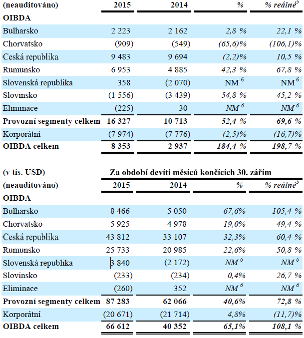 OIBDA se za třetí čtvrtletí 2015 téměř ztrojnásobila na 8,4 mil. USD.