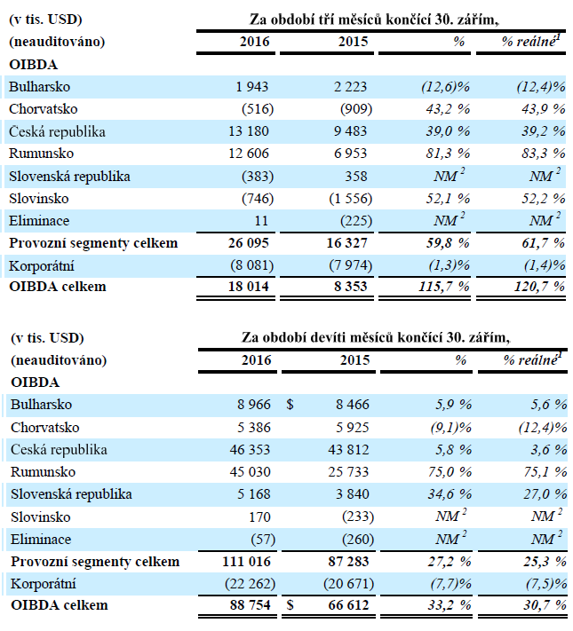 Provozní zisk před odpisy a amortizací OIBDA se v České republice zvýšil ve třetím čtvrtletí o 39 % na 13,2 mil. USD (cca 317 mil. Kč) a za prvních devět měsíců o 6 % na 46,4 mil. USD (cca 1,1 mld. Kč).