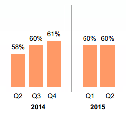 Celkové výnosy na českém trhu ve druhém čtvrtletí 2015 byly při konstantním kurzu vyšší o 9 %. Stalo se tak především zásluhou televizní reklamy – výnosy při konstantním kurzu se meziročně zvýšily o 10,5 %. Management CME zdůraznil, že růst výnosů z televizní reklamy pokračoval i ve druhém čtvrtletí přesto, že letošní časnější velikonoční svátky znamenaly přesunutí reklamních investic do čtvrtletí prvního. Svůj aktuální podíl na trhu televizní reklamy odhaduje CME v Česku na 60 %. Vychází z interních materiálů.