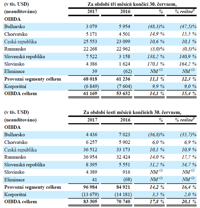 Provozní zisk před odpisy a amortizací (OIBDA) se ve druhém čtvrtletí na českém trhu meziročně zvýšil o více než 10 % na 25,6 mil. USD (cca 620 mil. Kč) a za celé první pololetí rovněž o více než 10 % na 36,5 mil. USD (cca 900 mil. Kč).