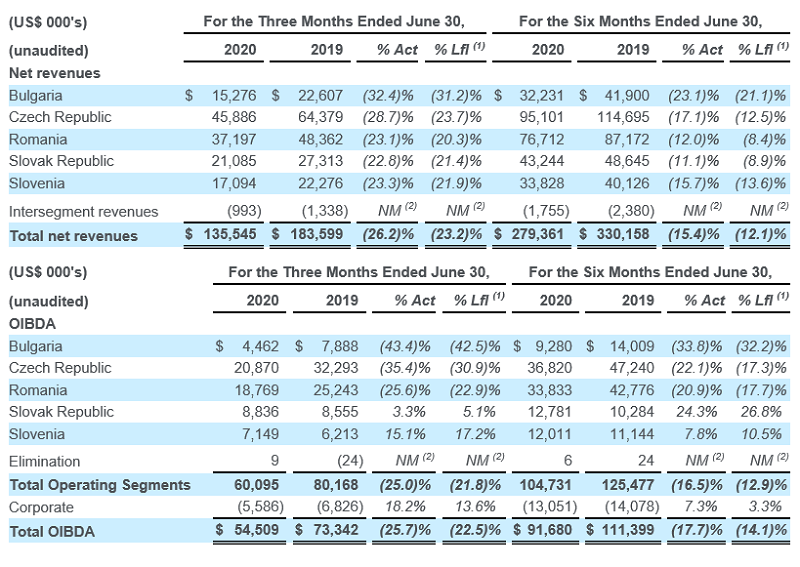 CME celkově hlásí na všech trzích, kde působí, za druhé čtvrtletí meziroční pokles výnosů o 26 %, za celé první pololetí pak pokles o 15 %. Především se na výsledku odrazil pokles reklamních výnosů (-21 %), naopak výnosy z přenosových poplatků mírně vzrostly o 7 %. Hrubý zisk OIBDA poklesl za období prvního pololetí o 18 % na 111,4 mil. USD.