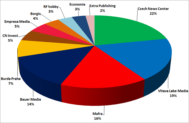 Druhým nejsilnějším vydavatelským subjektem je skupina Vltava Labe Media (Penta), vydavatel regionálního deníku Deník, s celkovým zásahem 2,88 mil. čtenářů (včetně magazínových titulů). Třetím nejsilnějším je Mafra (Agrofert), jejíž tituly na tiskovém trhu osloví 2,4 mil. čtenářů. Nejsilnější trojice zaujímá na trhu 57% podíl, v případě rozšíření o CN Invest 62% podíl.