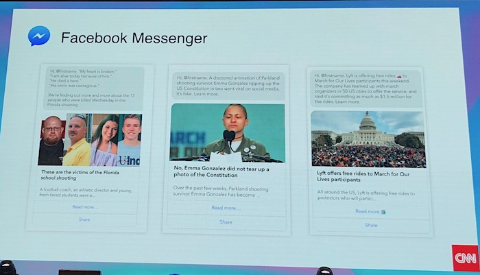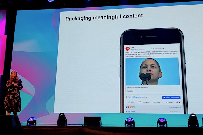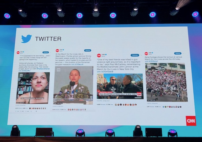 Jak konkrétně CNN pracuje s tolika kanály, demonstrovala Codianni na příkladu zpravodajského pokrytí Pochodu za naše životy (March for Our Lives), který se uskutečnil 24. března letošního roku jako reakce na floridský masakr, při němž devatenáctiletý střelec zabil 17 studentů střední školy v Parklandu.