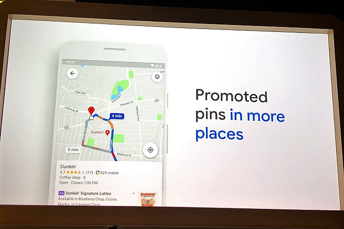 Méně sofistikovanou novinkou pro lokální kampaně je přenesení jednoho produktu z aplikace Waze, která rovněž patří Googlu. Nově bude možné využívat reklamní formát Promoted Pins, který při vyhledávání trasy v Google mapách může nabídnout návštěvu obchodu v okolí, na který uživatele upozorní červeným špendlíkem. Využít samozřejmě zadavatel může data pro cílení, jako u všech reklamních služeb z dílny Google.