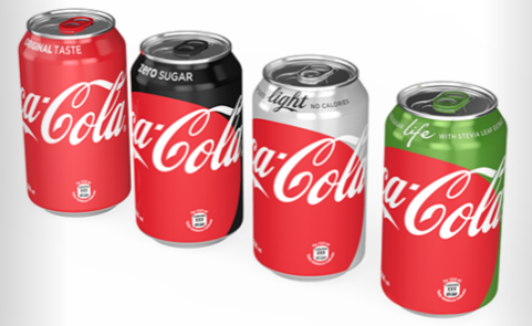 Rozlišujícím prvkem bude pro každý nápoj název a barva: červená pro standardní Coca-Colu, jež doprovodí nápis "Original Taste" a na vybraných "Classic", stříbrná pro Coca-Cola Light či Diet s nápisem "Crisp Taste, No Calories", černá pro Coca-Cola Zero, nově nazvanou "Zero Sugar", a zelená pro Coca-Cola Life s nápisem "Less Sugar, With Stevia Leaf Extract".