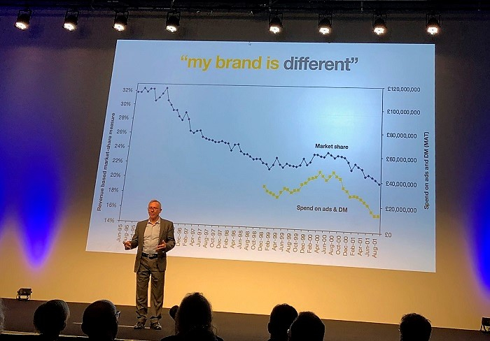 K zaměňování také dochází v případě snahy být jiní nebo odlišní než konkurence (differentation). Důležitější je podle Bineta stavět značku tak, aby byla pro uživatele rychle rozpoznatelná (distinctivness). Na příkladu jedné z kampaní demonstroval, že odlišnost nepomohla dané značce k růstu podílu na trhu.
